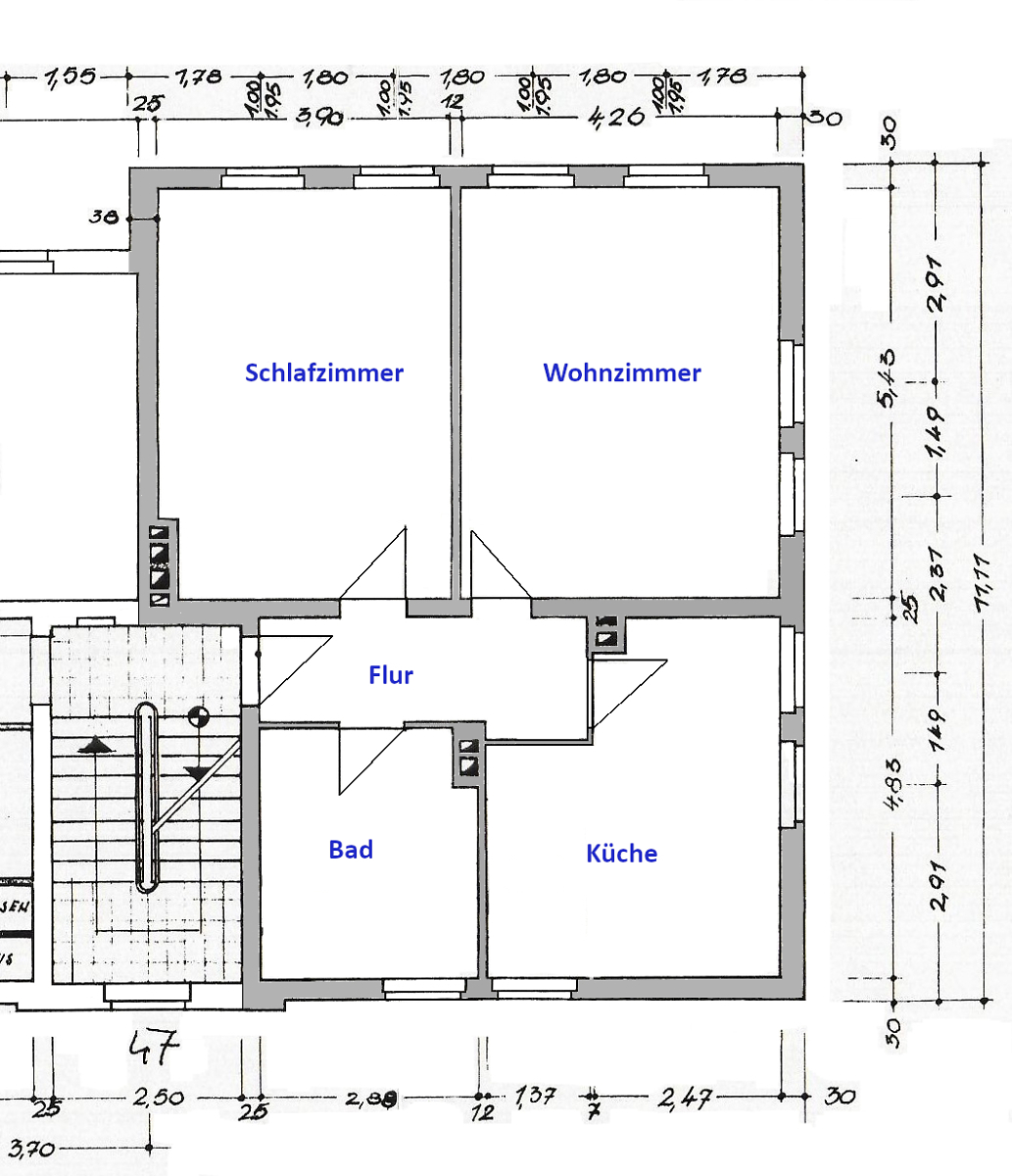 Komplett sanierte 2-Raum-Wohnung, neugefliestes Bad mit Wanne und Dusche, WC-Becken, Waschbecken, Handtuchheizkörper alles neu. Raufaser weiß, alle Räume CV-Belag. Wohnungseingangstür und alle Innentüren neu. Telefon- und Kabelanschluss (DSL, Telefon und Digital-TV über Kabelnetz möglich); Mieterkeller vorhanden, Keller und Dachboden vorhanden und nutzbar