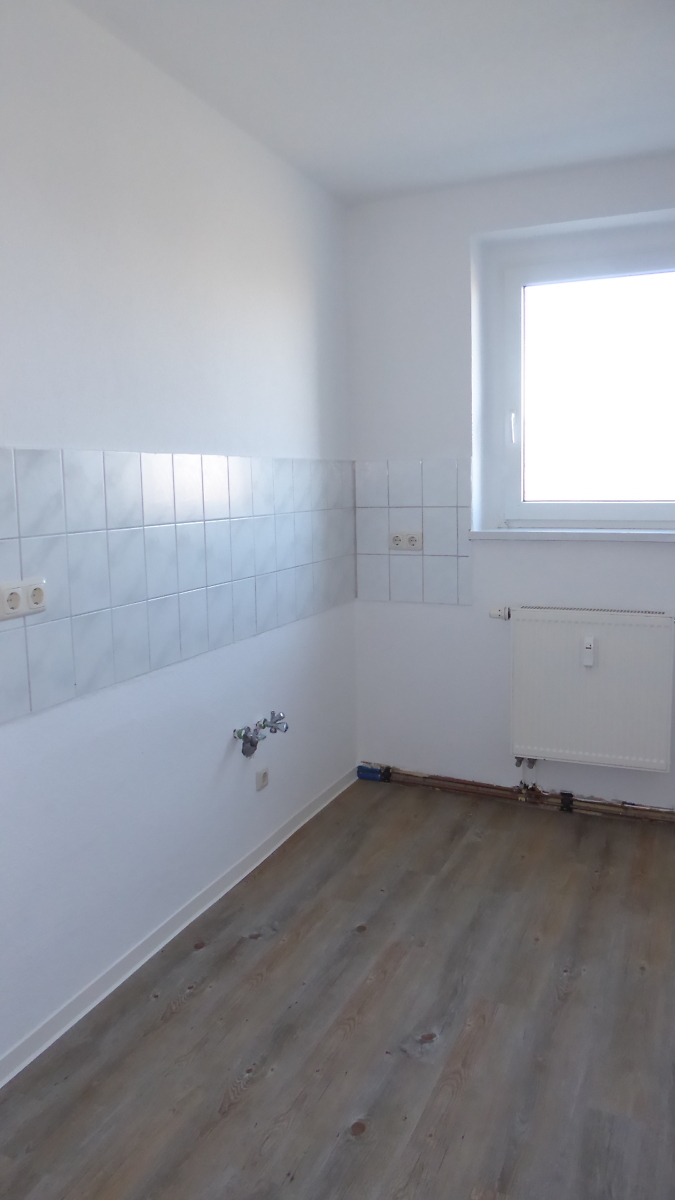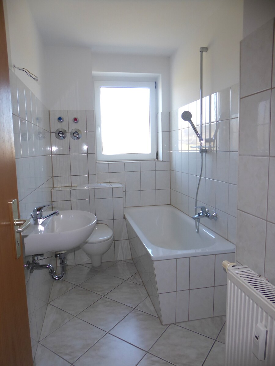 Sanierte 2-Raum-Wohnung, Bad gefliest mit Wanne, Raufaser weiß, alle Räume mit CV-Belag oder Laminat, Telefon- und Kabelanschluss.