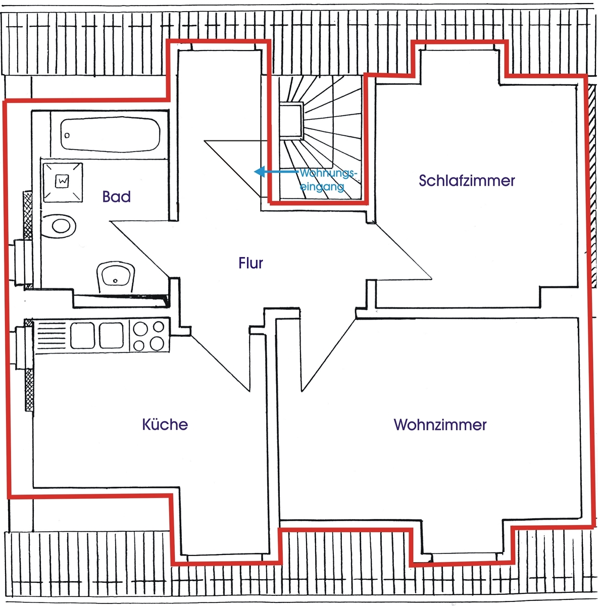 sanierte 2-Raum-Wohnung im Dachgeschoss in Kamsdorf