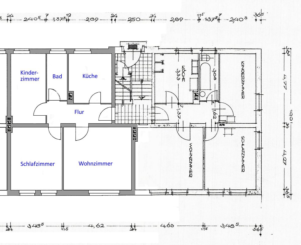 Komplett sanierte 3-Raum-Wohnung, neugefliestes Bad mit Wanne, WC-Becken, Waschbecken, Handtuchheizkörper alles neu. Raufaser weiß, Küche und Flur CV-Belag, restl. Räume Laminat. Wohnungseingangstür und alle Innentüren neu. Telefon- und Kabelanschluss (DSL, Telefon und Digital-TV über Kabelnetz möglich); Mieterkeller vorhanden, Keller und Dachboden vorhanden und nutzbar