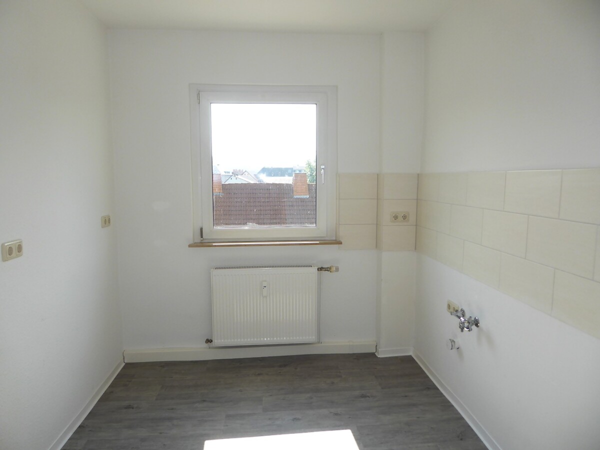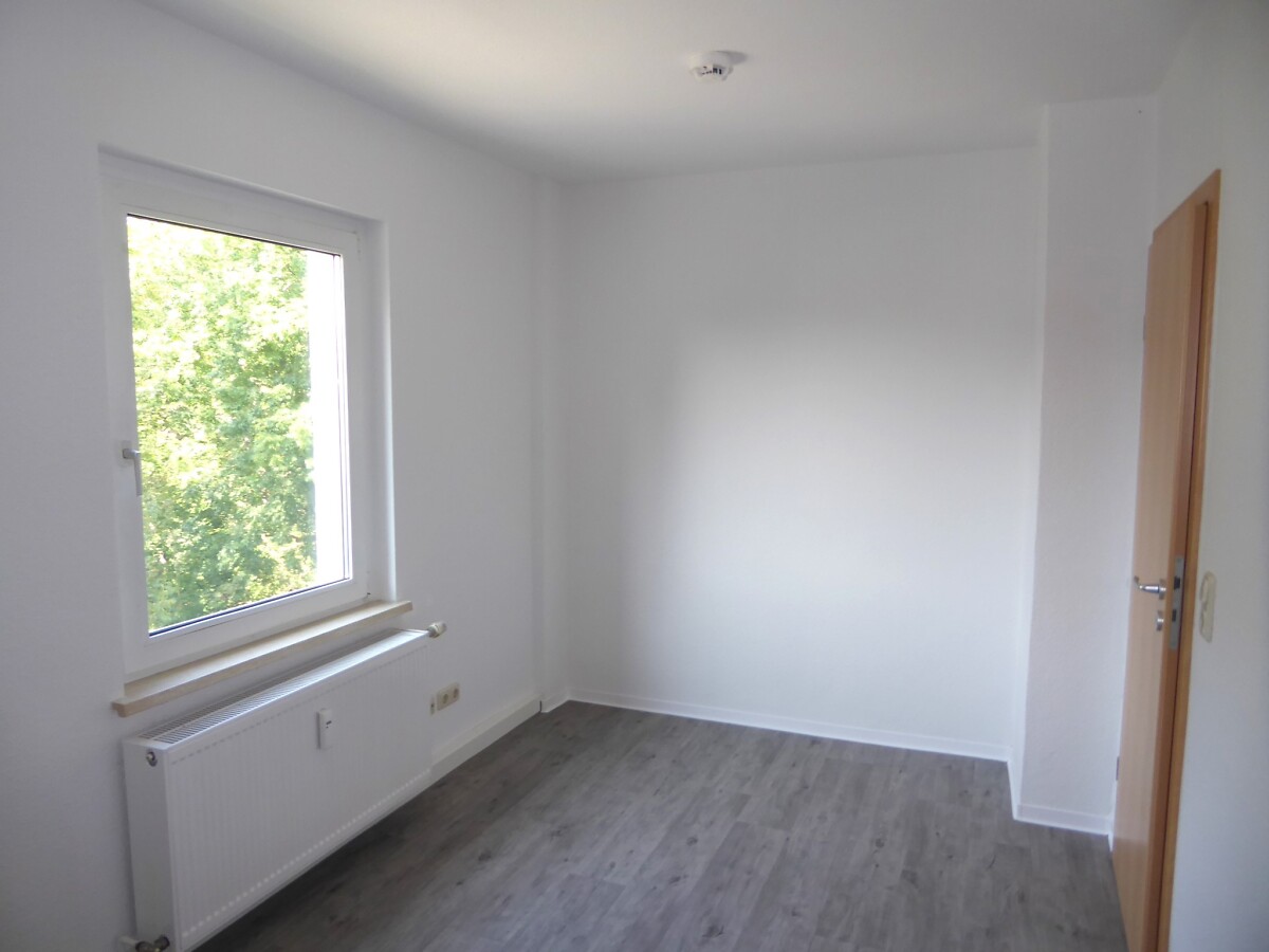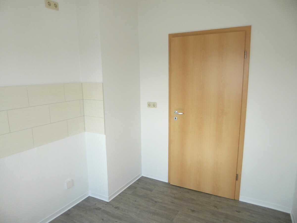 komplettanierte 3-Raum-Wohnung, neugefliestes Bad mit Wanne, WC-Becken, Waschbecken, Handtuchheizkörper alles neu. Raufaser weiß, Küche und Flur CV-Belag, die restlichen Räume Laminat. Wohnungseingangs- und alle Innentüren neu.